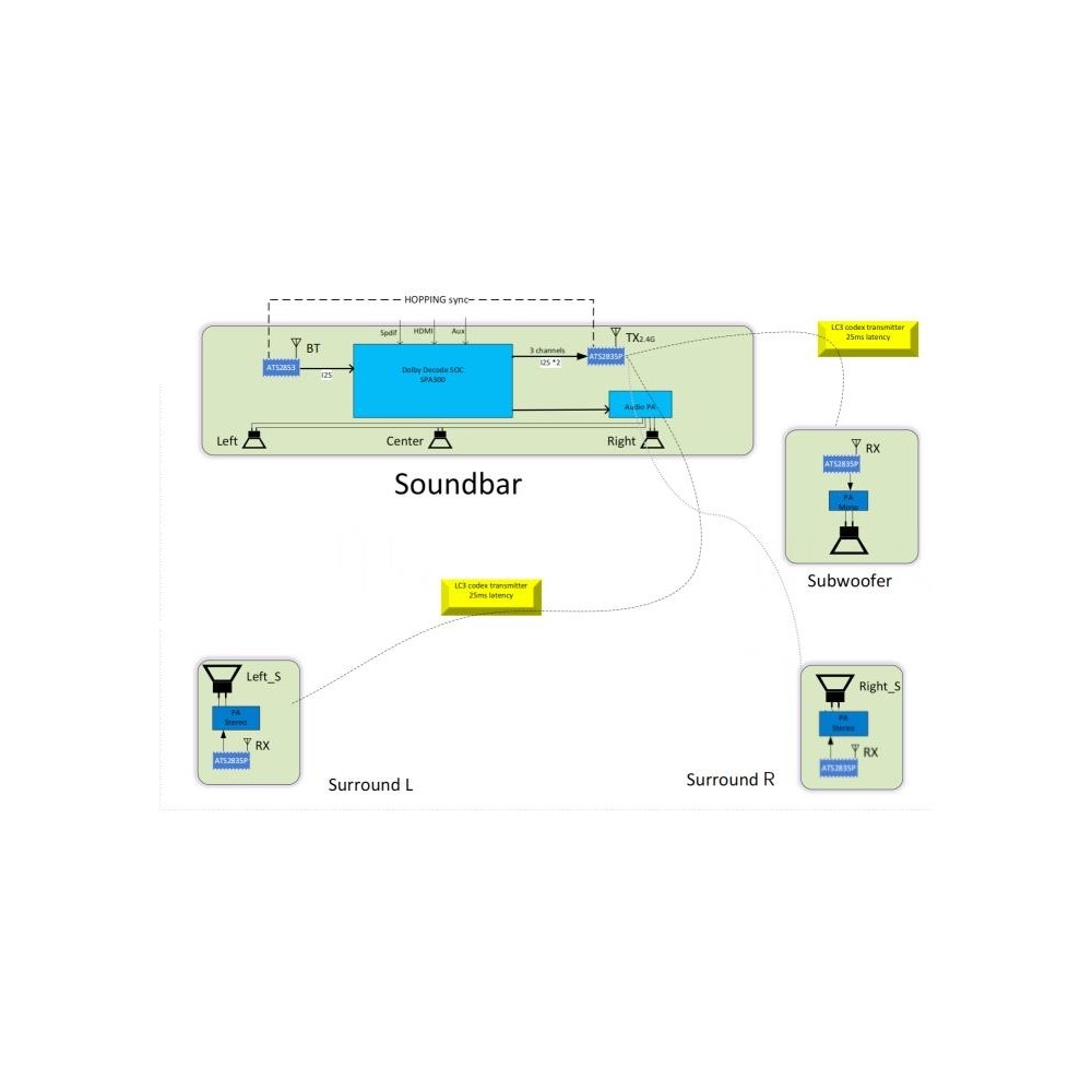 铠硕达研发技术骨干多年以来深耕于炬芯音频解决方案,为客户的派对音箱,家庭影院音响组合等音箱产品项目提供完整解决方案,并针对一拖多功能的开发有较深的支持沉淀。